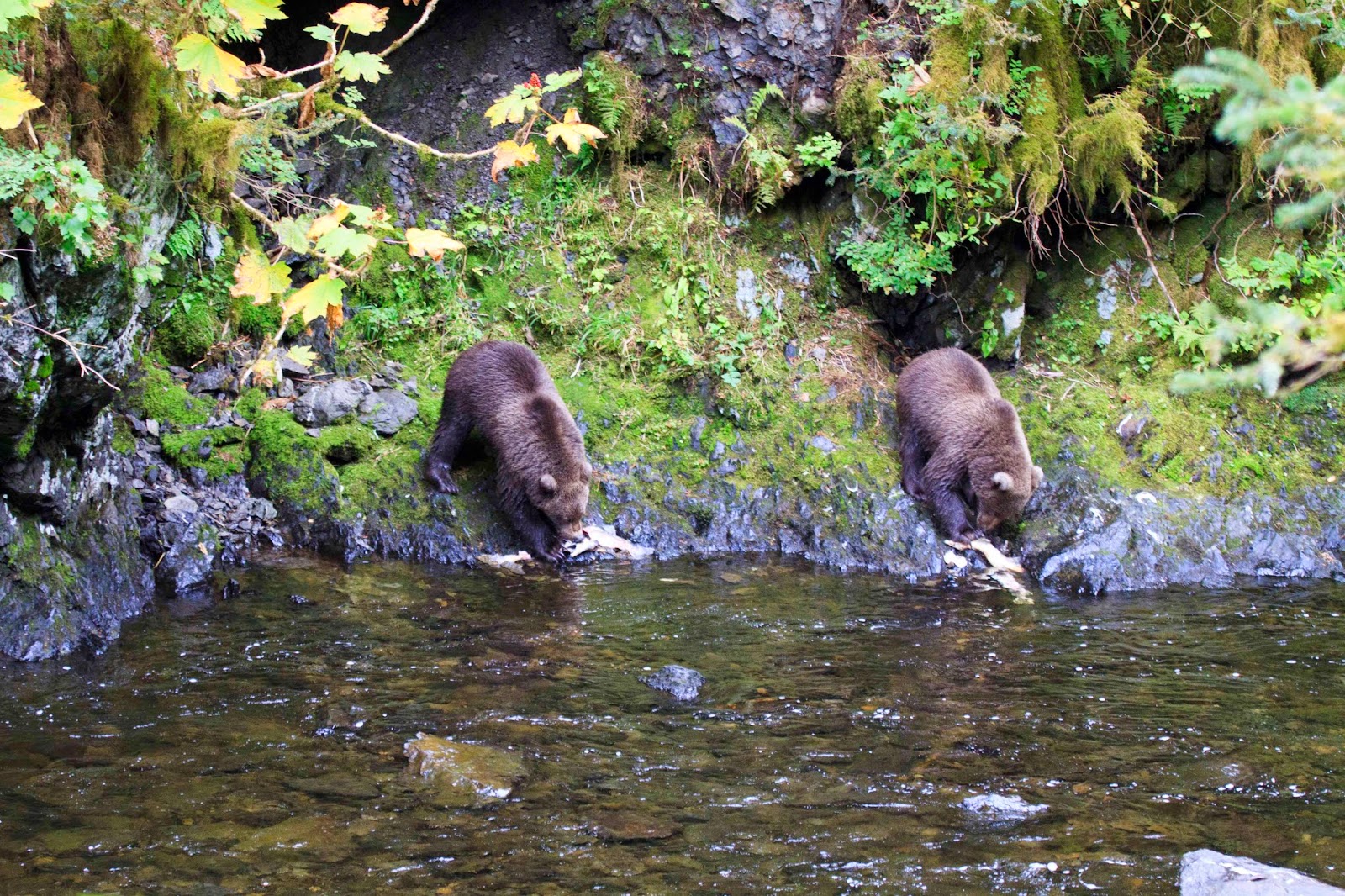 The bears seem to know the salmon have to congregate here at the base of the waterfall on their way upstream.
