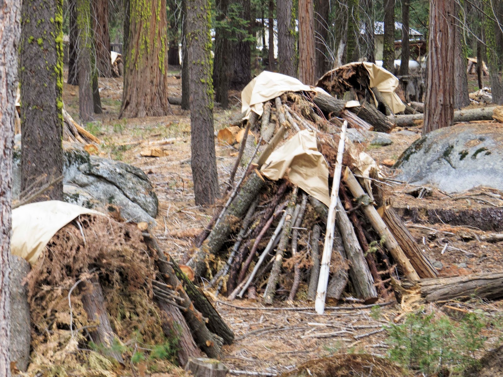 It was raining pretty hard when I checked in at Camp Curry. So we parked the car and grabbed a pizza in Curry Village. After lunch, these were the pictures Chrissy took from the parking lot.