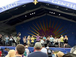 We started our Saturday at Jazz Fest with a Cochon de Lait po-boy and boiled crawfish. We might be tourists but we quickly learned how to look like we belong here. There are so many bands I want to see today that we will have to miss some of them or run from stage to stage. But we definitely we be watching Stevie Wonder to end the day...even though I would love to see Beck or Buddy Guy or Nathan & the Zydeco Cha-Chas but they are all playing at the same time. So is Snoop Dogg but he was such a disappointment at Riot Fest last year that I already decided not to choose him today. We are definitely starting our day with the very talented Paul Sanchez.
